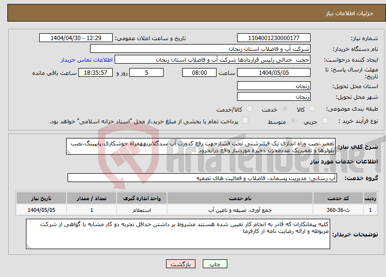 تجدید اجاره دو دستگاه تانکر آبرسانی مطابق فایل پیوست شده