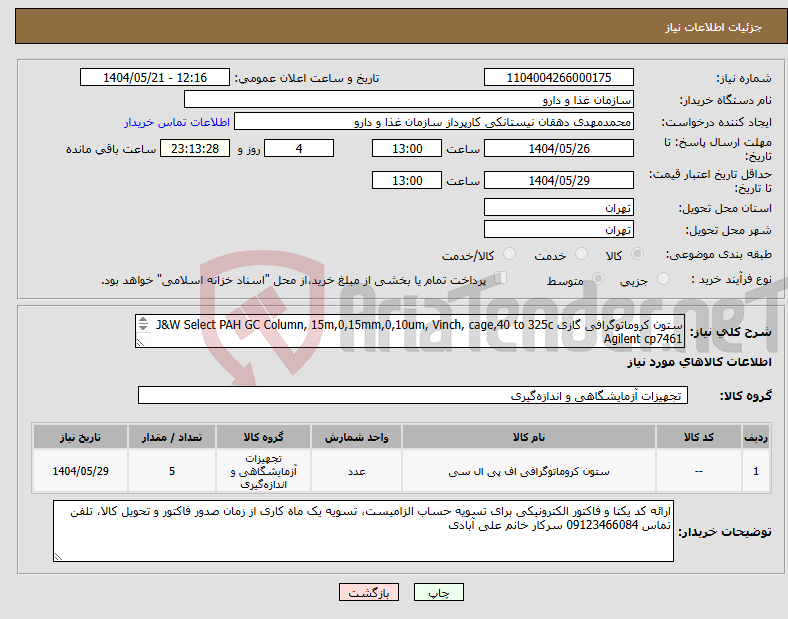 اقلام مصرفی آزمایشگاه مطابق لیست پیوست