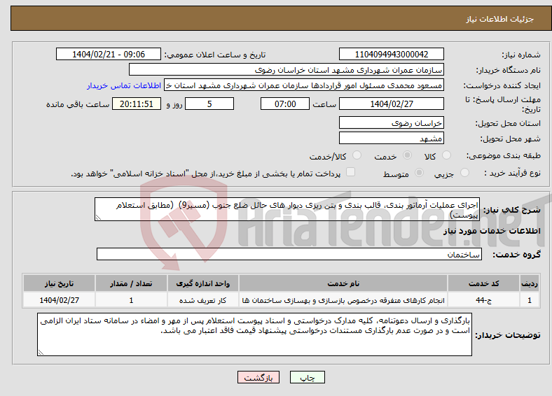 خرید مصالح شامل اساس،ماسه شسته و بیس طبق مشخصات پیوستی جهت مصرف در محلات عباسآباد،کانی کوزله،فرجه و قشلاق سنندج