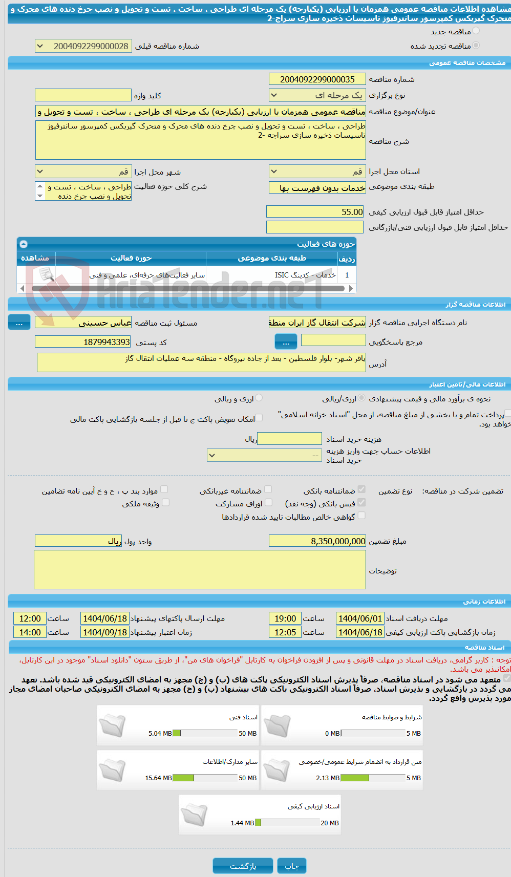 طراحی ، ساخت ، تست و تحویل و نصب چرخ دنده های محرک و متحرک گیربکس کمپرسور سانترفیوژ تاسیسات ذخیره سازی سراجه -2