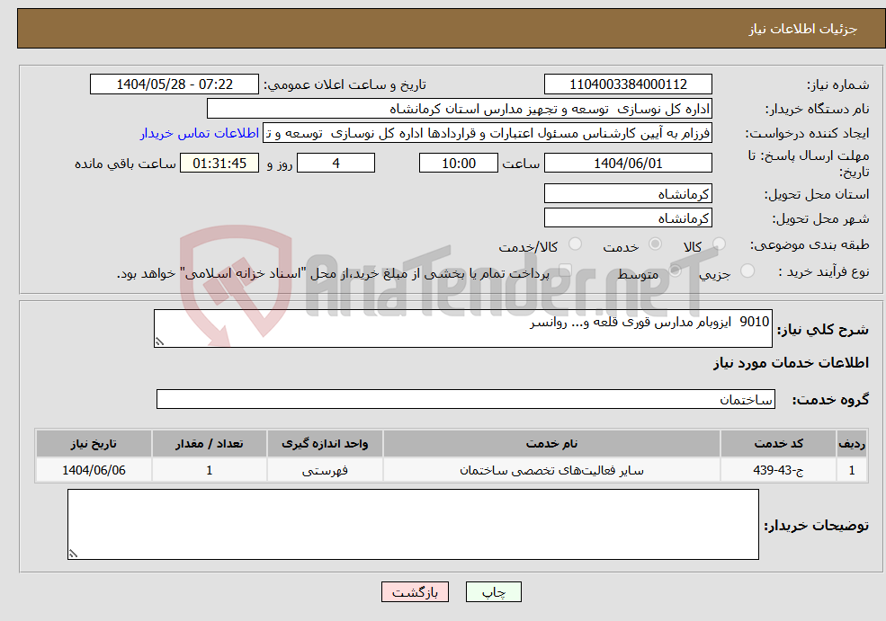 نیاز انتخاب تامین کننده-9010 ایزوبام مدارس قوری قلعه و... روانسر